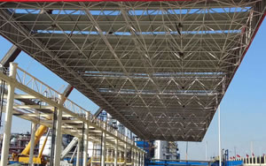 球形網(wǎng)架施工方案 1、工程概況和總體部署 網(wǎng)架采用正放四角錐形式,采用螺栓球接點(diǎn),采用普通鋼管材,采用兩側(cè)焊接水平支座...
